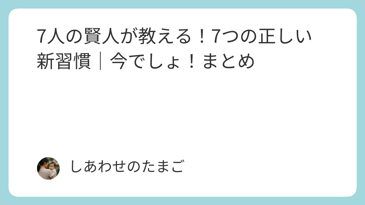 7人の賢人が教える!7つの正しい新習慣|今でしょ!(林修還暦でしょ!)まとめ